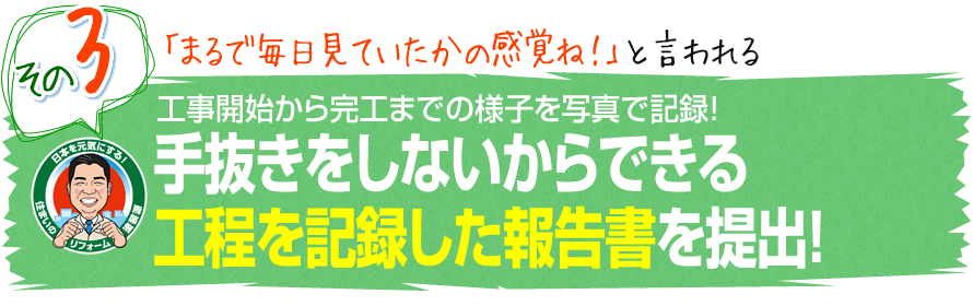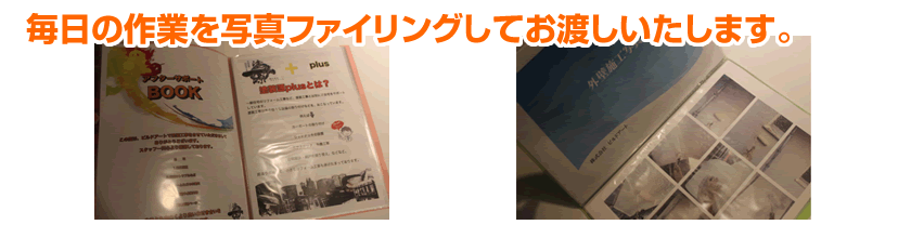 この不安な気持ちを解消するために開発したのが作業報告書です。毎日どんなことを行ったのかを写真付きでまとめてお渡しします。