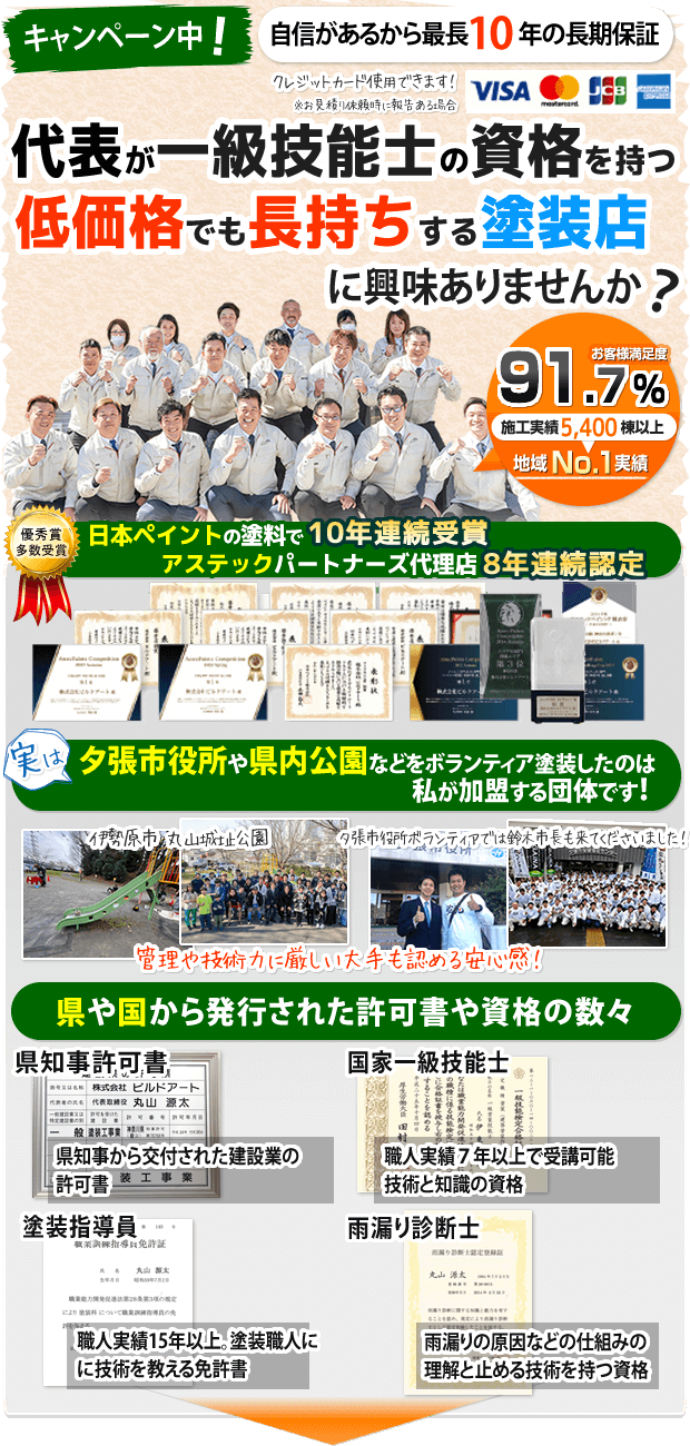 私どもはこのように考えているため、使用する塗料により異なりますが最長10年の保証を付けています。この期間中、問題が発生した場合は、電話1本でスグに伺い無料で補修いたします。