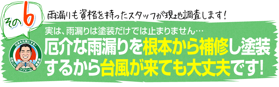 もし、雨漏りがある場合や雨漏りの不安がある方は、私達なら雨漏りを補修したあとに、しっかりと塗装するので、新築以上に綺麗で丈夫なお家になるので、台風が来ても安心して暮らすことが可能です。