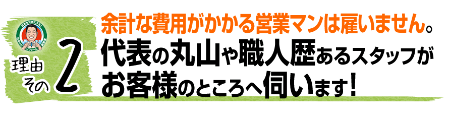 お客様から「これだけの実績があるから高いと思っていたけど、思ってた以上に安かった」と言われます。これが余計な費用の入らない適正価格な見積書です。
